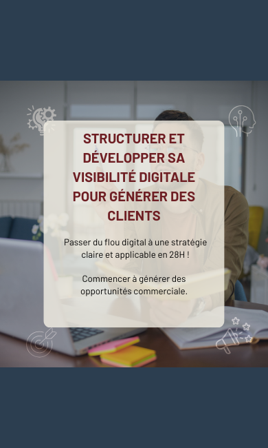 En 28h, passez d’une présence digitale floue à une stratégie claire qui attire et convertit vos prospects même si vous partez de zéro.